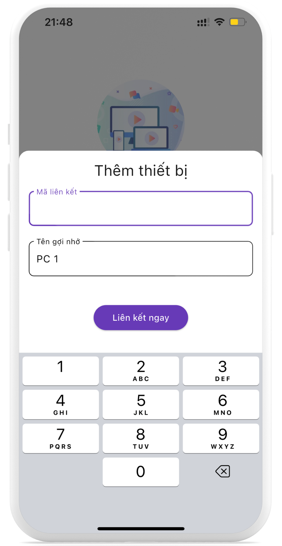 Nếu chưa liên kết với thiết bị nào